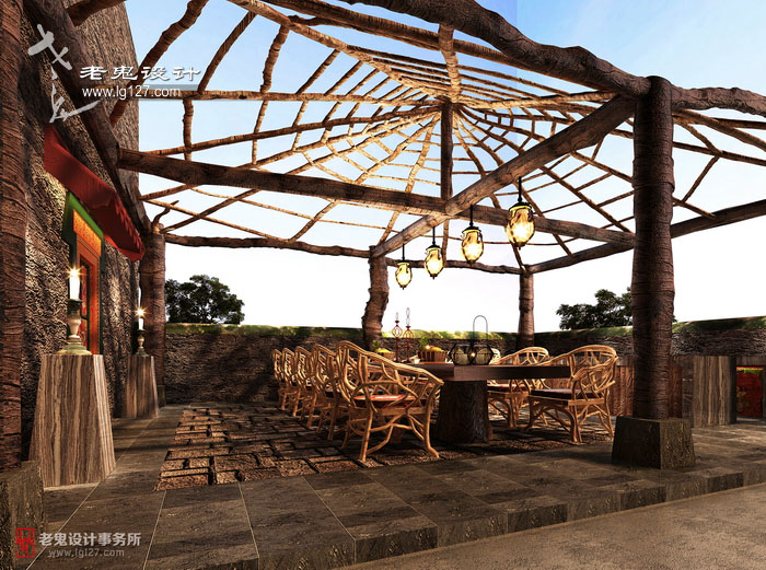 為了滿足旅行途中品茶、燒烤、咖啡、觀影的需求,酒店方還特別針對這些需求開辟了這些功能區(qū)。露天烤吧以木為主體結(jié)構(gòu)設計成蜘蛛網(wǎng)狀結(jié)構(gòu),一邊品茶燒烤,一邊遠眺遠處的風景,抬頭猶如深入原始自然。