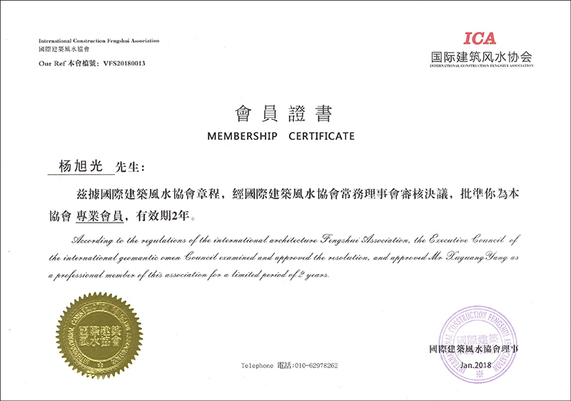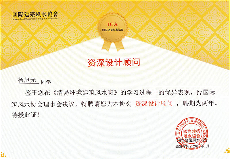 國際建筑風水協(xié)會資深設(shè)計顧問證書