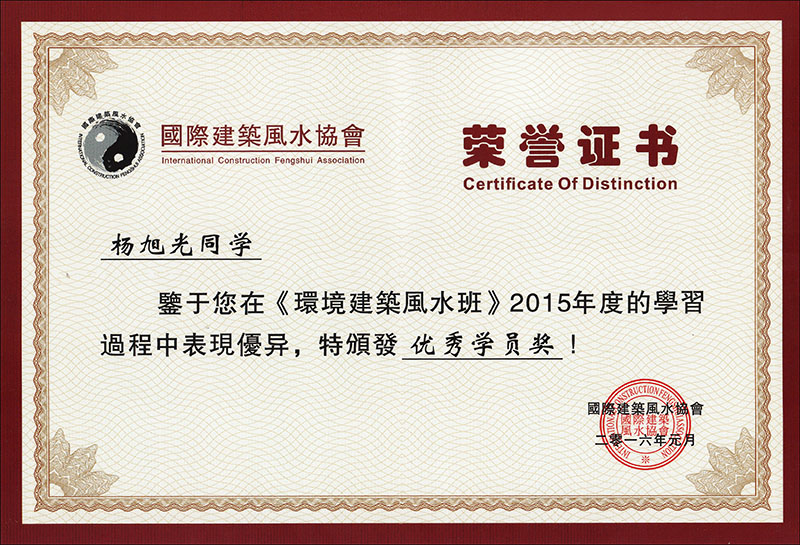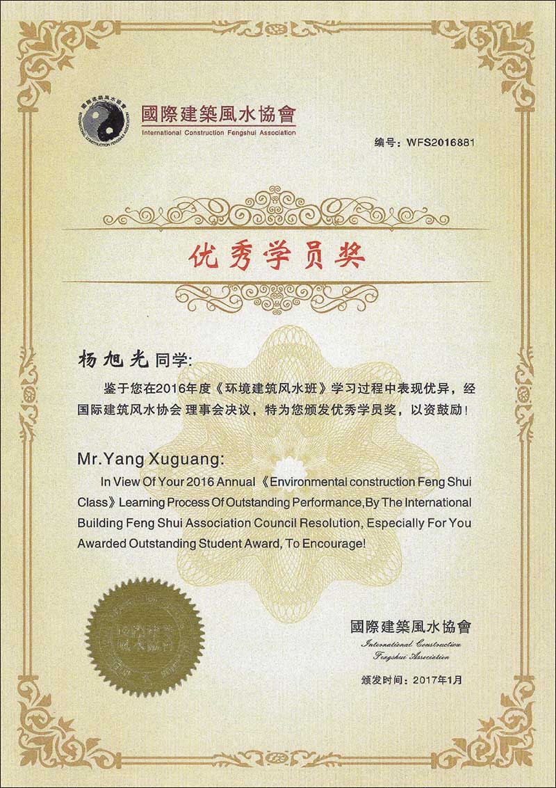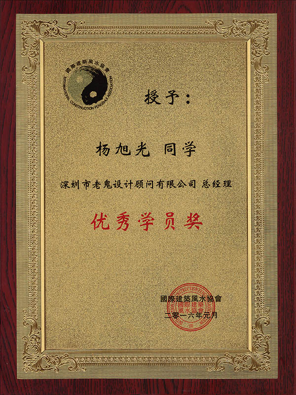 國際建筑風水協(xié)會優(yōu)秀學員獎