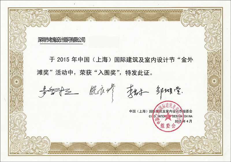 中國(上海)國際建筑及室內(nèi)設(shè)計節(jié)組委會證書