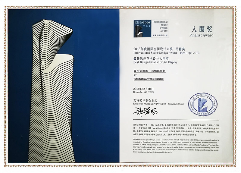 深圳市文化家居創(chuàng)意設(shè)計大賽獲獎證書