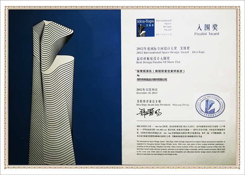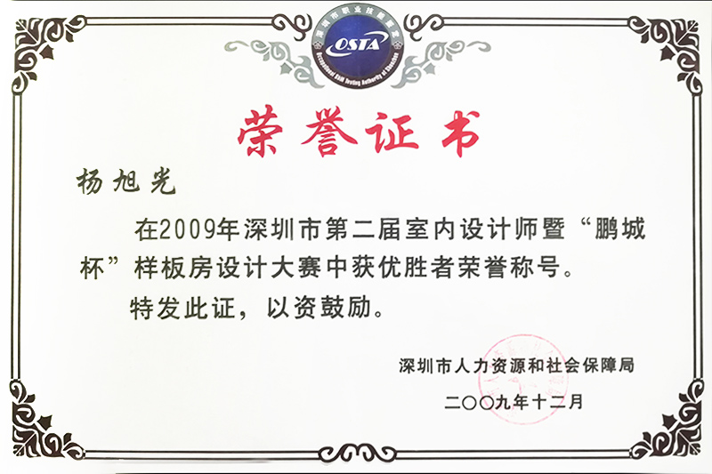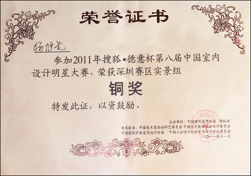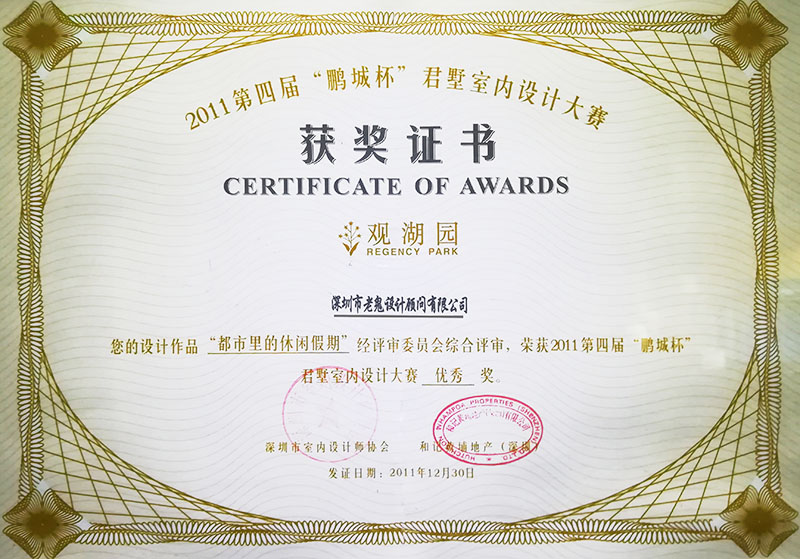 2011第四屆“鵬城杯”君墅室內(nèi)設(shè)計大賽獲獎證書