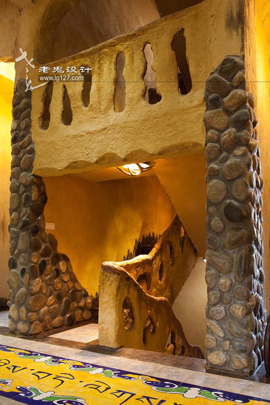 摒棄所謂高大上的設(shè)計元素,從生活中選材。打破習(xí)慣的規(guī)矩,從自然中尋找規(guī)則。河邊撿來的石頭、地上扒來的磚塊、被人遺棄的破損石像……皆可成為老鬼的設(shè)計元素。這種“任性”是對自然的尊崇,也是對自己的肯定。他不去試圖改變自然之美,而是在自然之美上賦予變幻莫測的“鬼計”,使之“氣韻生動”。